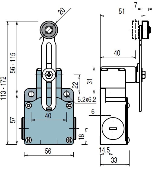 Ausführung des Betätigungselements - Rollenhebel verstellbar