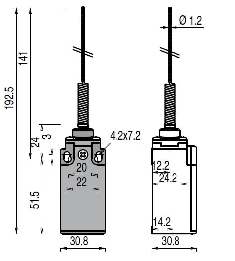 Interruttore di posizione ad asta a molla con puntale a filo, Custodia in tecnopolimero, una entrata cavi filettata, IP67 secondo IEC 60529 con pressacavo avente grado di protezione uguale o superiore, 1NO+1NC scatto rapido.