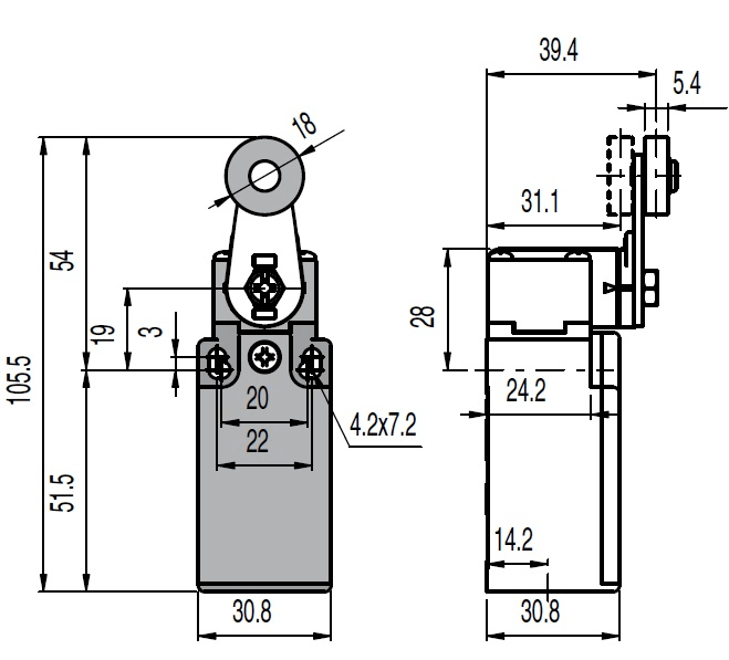 Interruttore di posizione a leva girevole con rotella, Custodia in tecnopolimero, una entrata cavi filettata, IP67 secondo IEC 60529 con pressacavo avente grado di protezione uguale o superiore, 1NO+1NC scatto rapido, con apertura positiva.