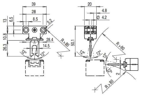 Attuatore per serie FR-FX-FK-FW. Azionatore universale in acciaio inox. Azionatore fissabile in molteplici posizioni con possibilità di regolazione in due direzioni per sportelli di piccole dimensioni. Il blocchetto di fissaggio è dotato di due coppie difori ed è predisposto per poter ruotare di 90° il piani di lavoro dell'azionatore.