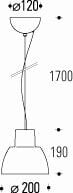 Diffusore In vetro metacrilato. Installazione Ancoraggio a soffitto mediante l'apposito rosone e relativo cavo in acciaio da mm. 1700. Glow wire (°C) => 850° - in conformità alla norma IEC EN 60598-1:2008 Annex ZC (13.3)