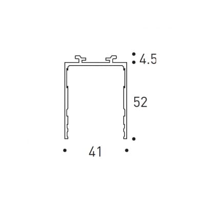Canalina da superficie e sospensione. Bianco opaco goffrato. 2300 X 41 X 56.5 mm.