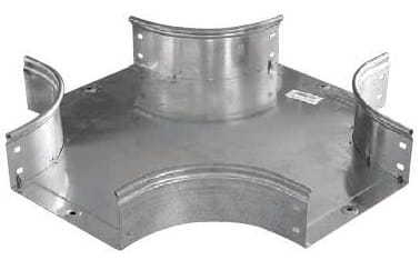 S5 Coperchio derivazione piana metallica a incrocio. Zincatura a caldo per immersione dopo lavorazione in zinco fuso. Dimensioni: base 400 mm, altezza 15 mm, ingrombro 700 x 700 mm. Raggio di curvatura 120 mm. Bordatura continua sui bordi per il montaggio a scatto sull'elemento. Connessione elettrica garantita alle estremità da fori M5 per viti automaschianti. Secondo Norme CEI EN 50085-1/A1:2013-06, 50085-2-1/A1:2011-10 - Conforme Norma CEI EN 61537. Direttiva comunitaria Bassa Tensione 2014/35/CE. Marchiatura IMQ e CE.