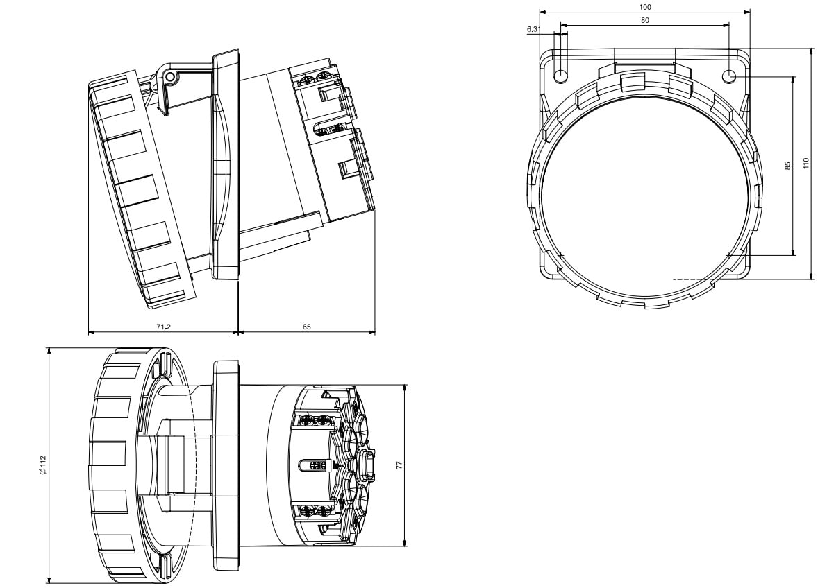 63A 3P+N+T 5h 600-690V 50Hz - 60Hz 100X110MM Morsetti a mantello