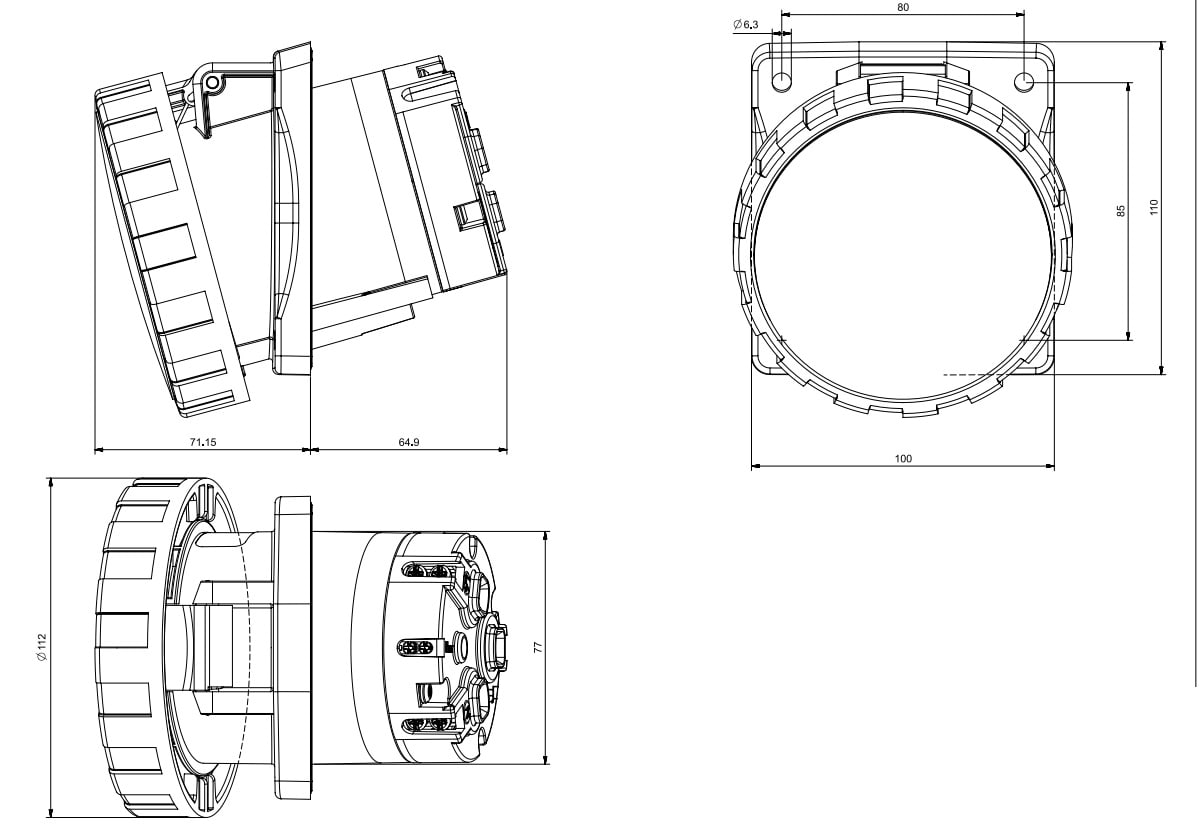 63A 2P+T 9h 380-415V 50Hz - 60Hz 100X110MM Morsetti a mantello