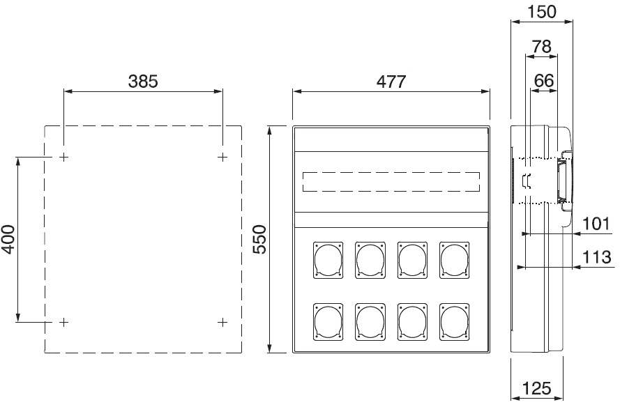 Contenitore modulare in tecnopolimero grigio RAL7035 IP66. Adatto per: n°8 prese 16A (70x87 mm) con opportuno adattamento anche 32A (84x106mm)