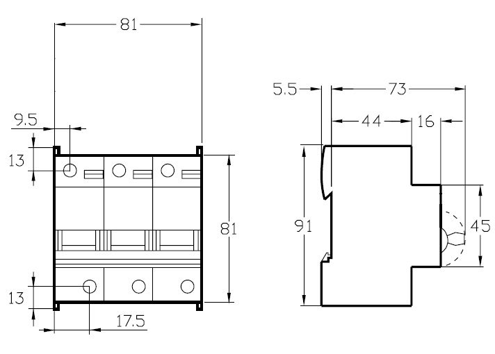 Anzahl der abgesicherten Pole - 3