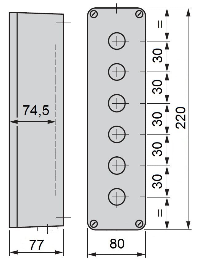 SCHNEIDER ELECTRIC - SNRXAPM4506 PULSANTIERA VUOTA ZINCO 6 FORI