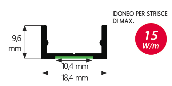 SIRIOprofile basic E7 - 2 m. Dimensioni: 18,4x9,6x2000mm. Bianco.