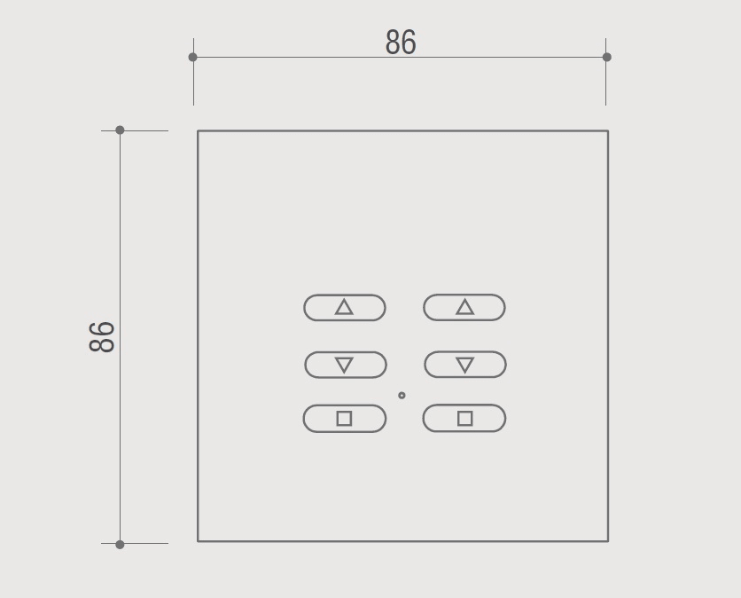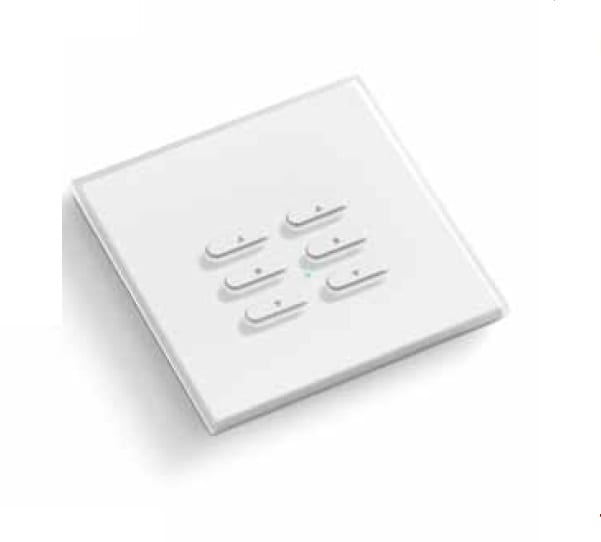 Trasmettitore wireless da parete per il controllo di 2 punti luce con funzione dimmer UP/DOWN/OFF. Prodotto in policarbonato disponibile in bianco o nero (cod: TVTXI868NN06L).