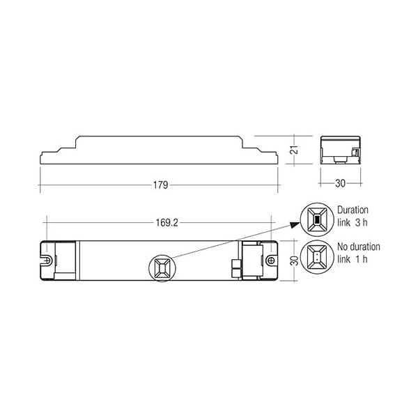 EM converterLED BASIC 204 NiCd/NiMH 50V - LED Driver per illuminazione d'emergenza con test manuale. Per illuminazione di emergenza a batteria singola. Per moduli LED con tensione di alimentazione 10 – 54 V. SELV per tensioni d'uscita < 60 V DC. Dimensioni compatte (21 x 30 mm sezione trasversale). Per integrazione sul corpo lampada. 5 anni di garanzia. Funzionamento in stanby. Durata nominale di funzionamento 1 o 3 h. Possibilità di scegliere la durata di autonomia con l'innesto (Duration Link). Compatibile con tutti gli LED Driver a corrente costante (dimmerabili e non). Vedi scheda tecnica, compatibilità con LED Driver). Tecnologia 3-pol: commutazione bipolare del modulo LED e inserimento ritardato della rete per il driver LED. Spegnimento automatico dell'uscita nel caso il carico LED superi il limite previsto. Potenza d'uscita costante. Emissione massima di luce per tutti i moduli LED. Sistema di carica elettronico. Protezione contro le scariche elevate. Collegamento all'accmulatore con protezione contro il cortocircuito. Protezione contro la polarità inversa per la batteria. Numero di celle 4. Potenza: 3,5W. Dimensioni L x l x H: 179 x 30 x 21 mm.