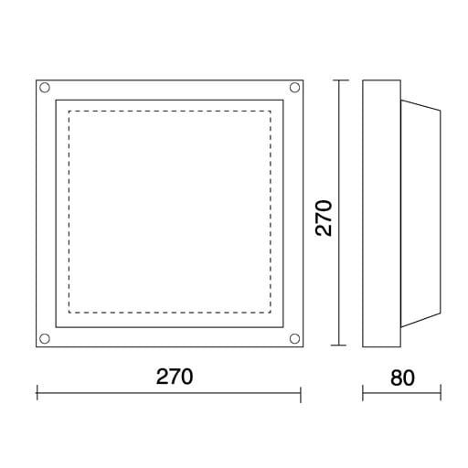 installazione: Fissaggio a Parete/Plafone. corpo / struttura: Corpo in pressofusione di alluminio EN AB-47100. verniciatura: Verniciatura in polveri di poliestere con trattamento speciale per esterni (sabbiatura, decappaggio, n.3 lavaggi, fluorzirconatura, fondo in polveri epossidiche e finitura di superficie in polvere di poliestere). colore: Nero. equipaggiamento: Guarnizioni in gomma siliconica. vetro / schermo: Schermo diffusore in policarbonato opale. pressacavo: Passacavo in gomma siliconica PG11. alimentatore: Tensione di rete. tensione: 230V 50Hz. fascio luminoso: Simmetrico diffondente. classe isolamento: Classe 1. peso: 2,400 kg. grado IP: 65. filo incandescente: 650 °C. grado IK: 10. lampada inclusa: si. potenza lampada: 19.4 W. flusso apparecchio: 1584.8 lm. durata nominale: 50000 ore L80 B50. temperatura di colore: 4000K. indice resa cromatica: 80. Lampada: 1 x 19.4 W 2440 lm.