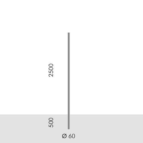 PALO CILINDRICO Ø 60 mm DA INTERRARE. Altezza totale del palo 3000 mm. Da interrare per una profondità di 500 mm. Altezza totale fuori terra prodotto finito 3065 mm. Colore: Grigio antracite (cod. 24).