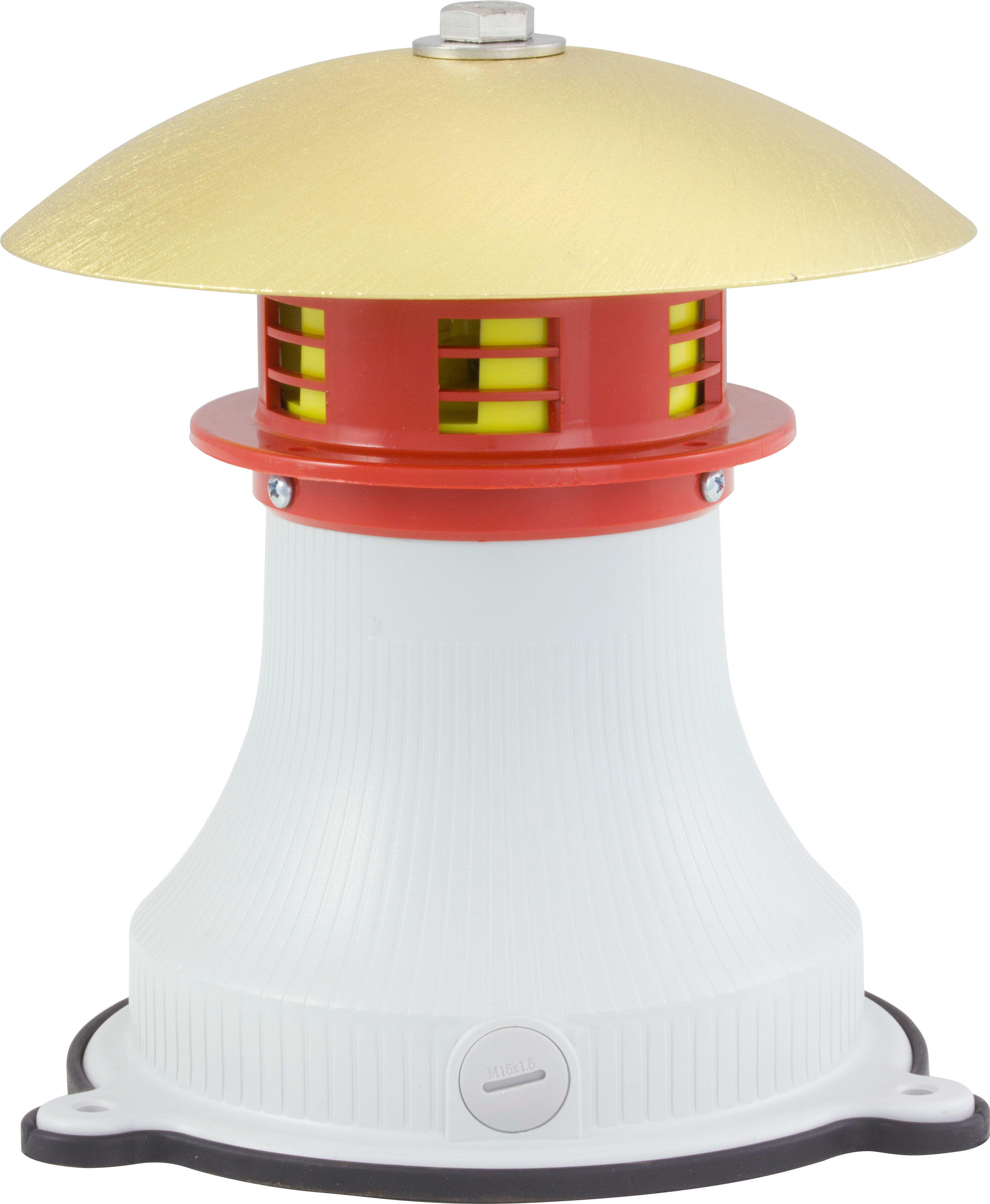 Sirena elettromeccanica progettata per applicazioni industriali. Il dispositivo, costituito da un motore elettrico collegato ad una ventola interna, genera un suono lungo ed acuto. Il suono, ad alta frequenza, replica le caratteristiche tipiche di un fischio, permettendo il riconoscimento dello stesso da parte dell’utenza. Sirena dotata inoltre di una speciale cupola protettiva in alluminio, per aumentarne la protezione dagli agenti atmosferici quando installata in ambiente esterno. Ideale per applicazioni industriali, dalla segnalazione generica all’allertamento di pericoli incombenti. Il dispositivo viene installato idealmente in posizione verticale per garantire la totale efficacia della cupola protettiva. Corpo in ABS autoestinguente ad alta resistenza agli impatti. Diffusore suono in ABS. Cupola protettiva in alluminio. Fissaggio tramite viteria standard non fornita. Termointerruttore di protezione motore montato.