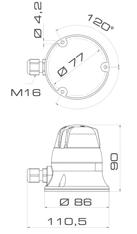 Dispositivo luminoso per applicazioni industriali a bordo macchina, versione a flash con lampada a scarica di Xenon. Sorgente luminosa: lampada a scarica di Xenon: flash singolo (1F) da 1J. Base in PC/ABS, cupola in policarbonato. Fissaggio tramite viteria standard non fornita.