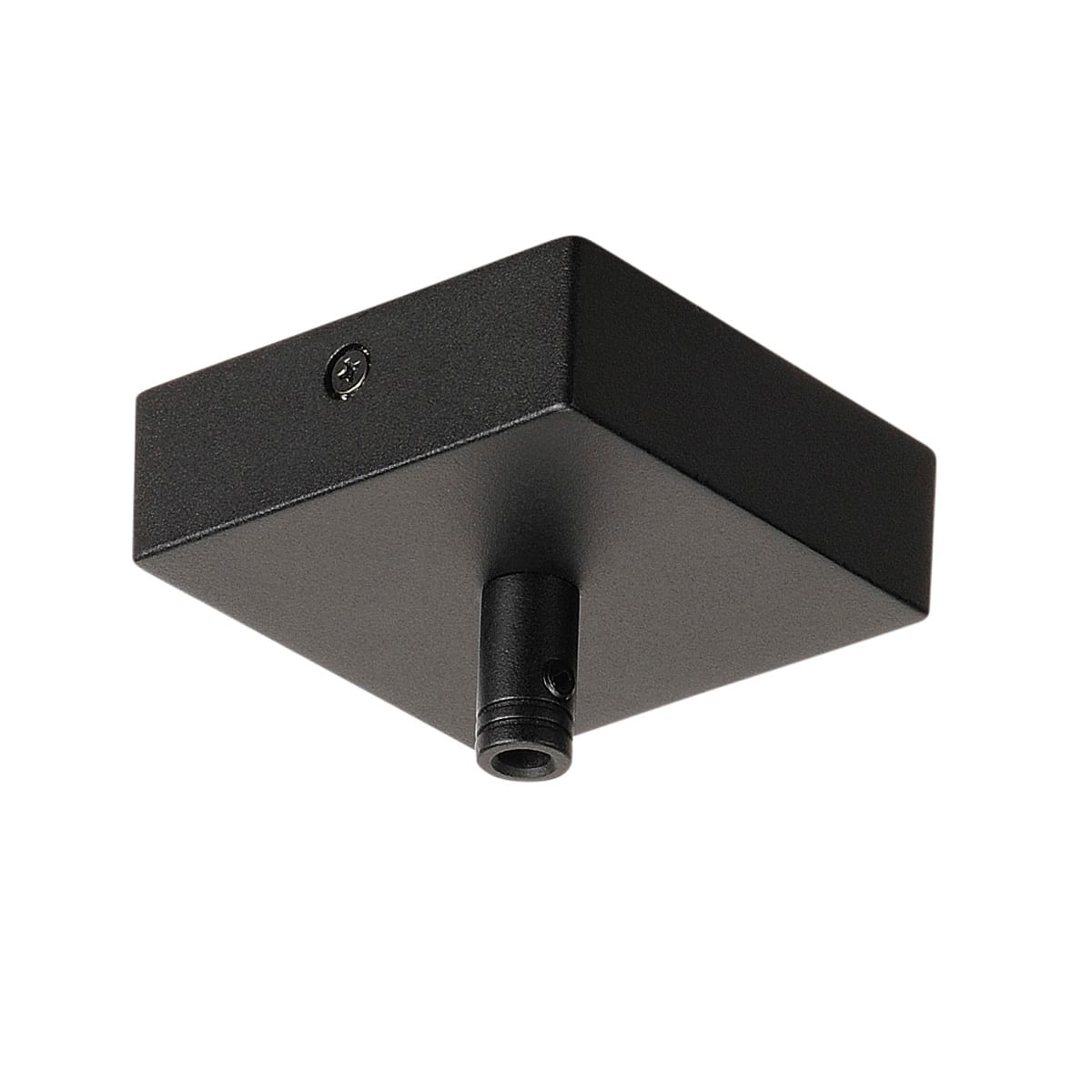 Rosone a plafone per sospensione GLENOS nero opaco, con sistema di scarico del ramo secondario. Materiale Alluminio. Montaggio a soffitto. 85x85x27mm.