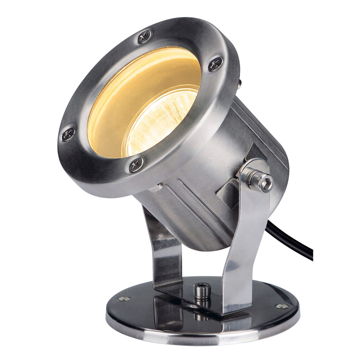 Lampada di alta qualità in acciaio inox 316 resistente alle intemperie NAUTILUS QPAR51 per il montaggio a pavimento, a parete o a soffitto. Il vano ottico montato sulla staffa è orientabile, per un posizionamento ottimale. La lampada è adatta anche per l’uso esterno grazie al grado di protezione IP55. La lampada si collega alla rete elettrica tramite cavo di alimentazione da 1,5 m. Come ulteriore accessorio opzionale è disponibile un picchetto. Questo apparecchio è adatto per lampadine di classe energetica: E - A+. QPAR51 1x35W GU10. Colore acciaio inox.