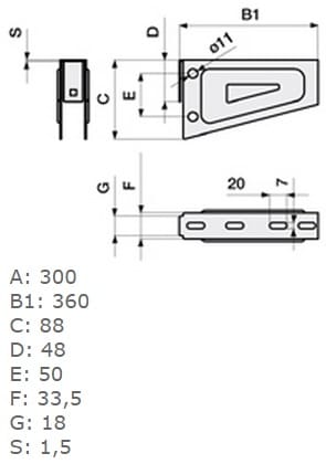 STEEL LINE CMS: PMU300S PUNTA MENSOLA UNICA B300, Mensola per sistema portacavi