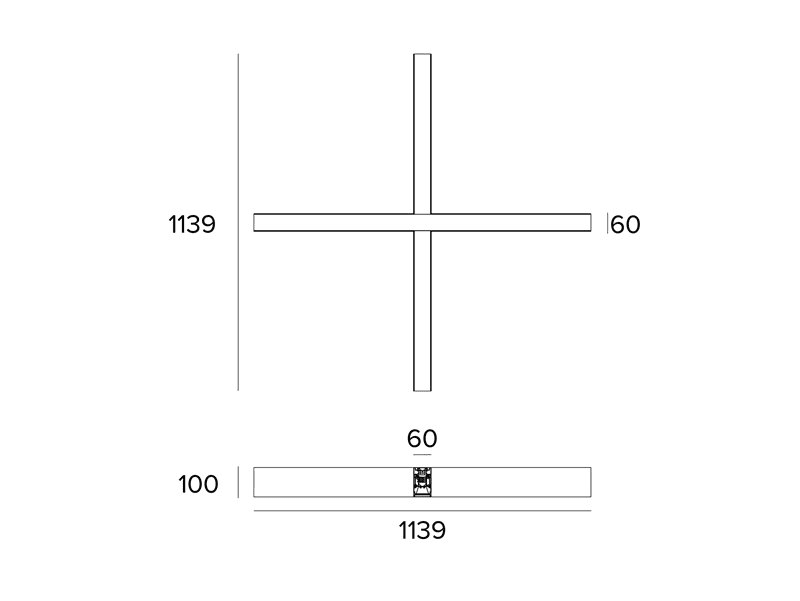 Apparecchio X a LED stand alone per installazione a plafone o a sospensione. 24W. 14400 lm. 4000K.