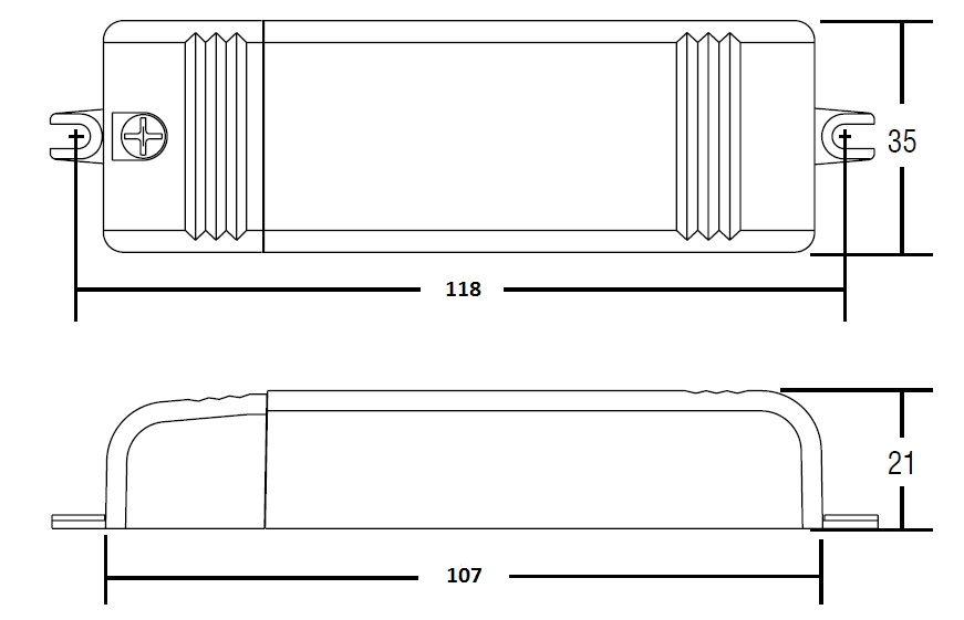 Trasformatore indipendente IP20, per lampade alogene 12 V. Protetto in classe II contro le scosse elettriche per contatti diretti e indiretti. Fornito di coprimorsetto e fissacavo. Morsetti di entrata e uscita sullo stesso lato (sezione morsetto 2,5 mm2). Serracavo su primario e secondario per cavi di diametro: min. 3 mm - max. 8 mm. Sguainatura dei cavi max. 18 mm. Fissaggio del trasformatore tramite asole per viti. Dimensioni ultra compatte. Protezioni: termica e al corto circuito; contro le extra tensioni di rete; contro i sovraccarichi