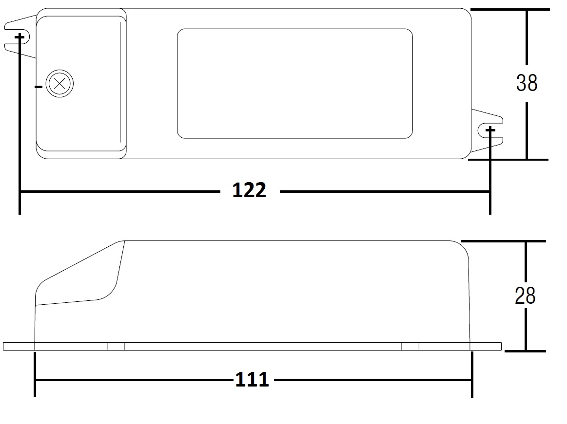 Trasformatore indipendente IP20, per lampade alogene 12/24 V. Protetto in classe II contro le scosse elettriche per contatti diretti e indiretti. Fornito di coprimorsetto e fissacavo. Morsetti di entrata e uscita sullo stesso lato (sezione morsetto 2,5 mm2). Serracavo su primario e secondario per cavi di dimetro: min. 3 mm - max. 8 mm. Sguainatura dei cavi max. 18 mm. Fissaggio del trasformatore tramite asole per viti. Protezioni: termica e corto circuito; contro le extra tensioni di rete; contro i sovraccarichi