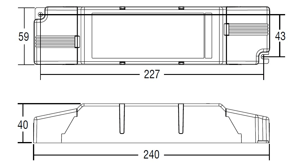 Alimentatore multipotenza fornito di dip-switch per la selezione della corrente in uscita. Alimentatore indipendente IP20 (SIRIO 150). Protetto in classe II contro le scosse elettriche per contatti diretti e indiretti (SIRIO 150). Alimentatore da incorporare (SIRIO 150 BI). Utilizzabile per apparecchi di illuminazione in classe di protezione I e II (SIRIO 150 BI). PFC attivo. Uscita ausiliare 12 V max. 100 mA. Corrente regolata ±5 % incluse variazioni di temperatura. Morsetti di entrata e uscita contrapposti (sezione cavo fino a 1,5 - 2,5 mm2 / AWG15 - AWG13). Serracavo su primario e secondario per cavi di diametro: min. 3 mm - max. 8 mm (SIRIO 150). Protezioni: termica e cortocircuito; contro le extra-tensioni di rete; contro i sovraccarichi. Protezione termica = C.5.a. I drivers sono disponibili con tropicalizzazione su richiesta (aggiungendo CC al codice articolo).