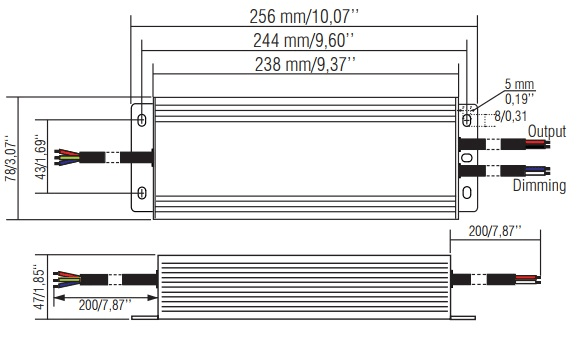 Alimentatore elettronico regolabile con uscita in tensione per moduli LED. Alimentatore indipendente IP66, per uso interno ed esterno. Protetto in classe I contro le scosse elettriche per contatti diretti e indiretti. Fornito di cavi su primario e secondario per il collegamento. Se il cavo di rete è danneggiato deve essere sostituito da personale autorizzato. Protezioni: termica e cortocircuito; contro le extra-tensioni di rete; contro i sovraccarichi.