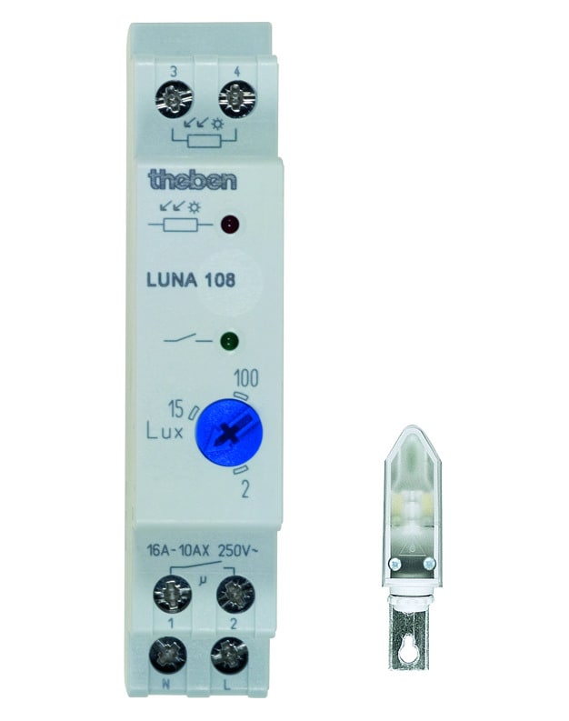 Interruttore crepuscolare analogico. Sensore di luminosità a scomparsa. Ritardo di inserimento/spegnimento fissi. per evitare attivazioni indesiderate a causa di fulmini, fari di automobili, ecc.. Indicazione dello stato di commutazione e del canale. Regolazione continua della luminosità.