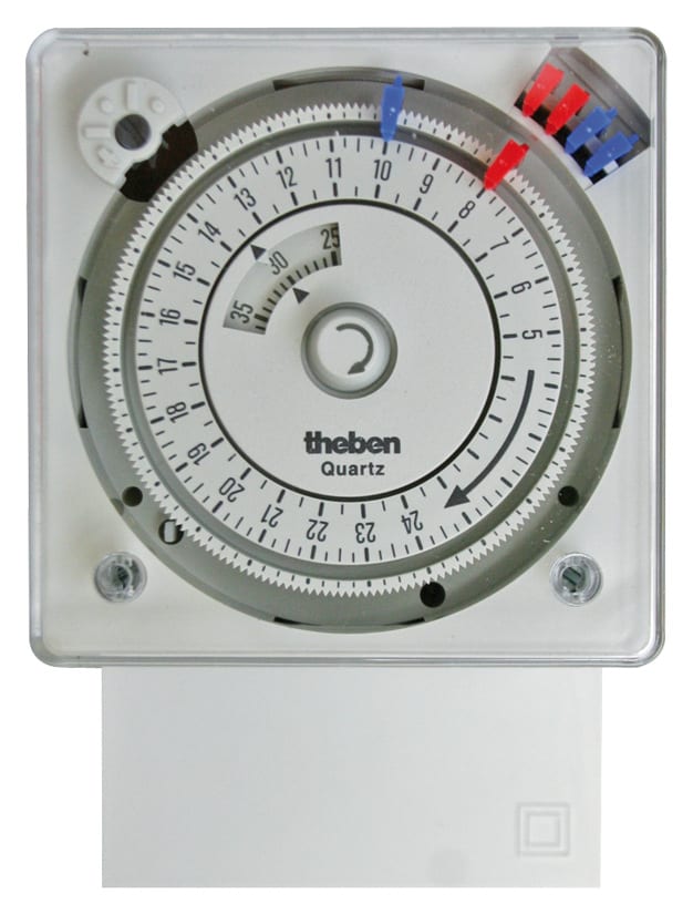 Interruttore orario analogico con programma giornaliero. 1 canale. Con riserva di carica (batteria NiMH). Comando al quarzo. 6 cavalieri forniti in dotazione. Timer a cavalieri. Tempo di commutazione più breve: 22,5 minuti. Preselezione della commutazione. Interruttore permanente ON/OFF. Indicatore stato di commutazione.