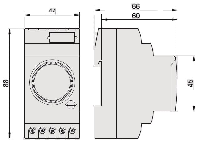 Interruttore orario elettromeccanico in 2,5 moduli DIN, con quadrante a cavalieri e programmazione settimanale. • Alimentazione: 230V AC 50/60 Hz - riserva di carica 150 h • Batteria sostituibile • Tempo minimo di intervento: 2 ore • Portata contatto:16A / 250V AC.