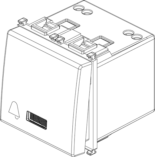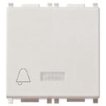 Pulsante SET/RESET per chiamata di emergenza, individuazione al buio, 2 uscite a relè NO 5 A 250 V~ per segnalazione ottica ed acustica, alimentazione 12 V~ 50-60 Hz o 12-24 Vd.c. (SELV), bianco - 2 moduli. SET con pulsante incorporato o da più punti conpulsanti NC collegati in serie. RESET da più punti con pulsanti NC collegati in serie