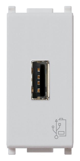 Unità di alimentazione 5 V 1,5 A per dispositivi elettronici, 1 uscita USB frontale, alimentazione 120-230 V~ 50/60 Hz - 1 modulo. Il dispositivo va utilizzato per ricaricare i telefoni cellulari e tutti gli apparecchi elettronici che offrono la possibilità di ricarica da una qualsiasi presa standard USB