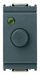 Regolatore 120 V~ 50-60 Hz per: lampade ad incandescenza 30-500 W, trasformatori ferromagnetici 30-300 VA, comando e regolazione con potenziometro rotativo, individuazione al buio, grigio.