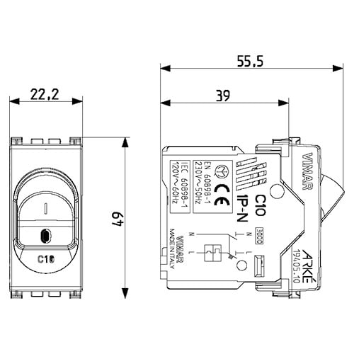 VIMAR S.P.A. - VIW19405.10.B INTERRUTTORE MT 1P+N C10 120-230V BIANCO