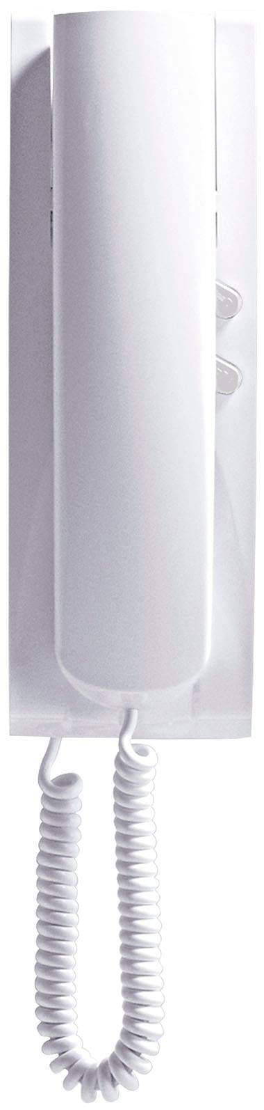 Citofono da parete universale senza segreto di conversazione per sistemi di chiamata in c.a. e Sound System, compatibile con citofoni di altre case costruttrici per sistemi di chiamata in c.a. ed elettronica (non digitale), bianco
