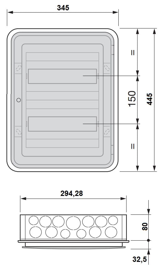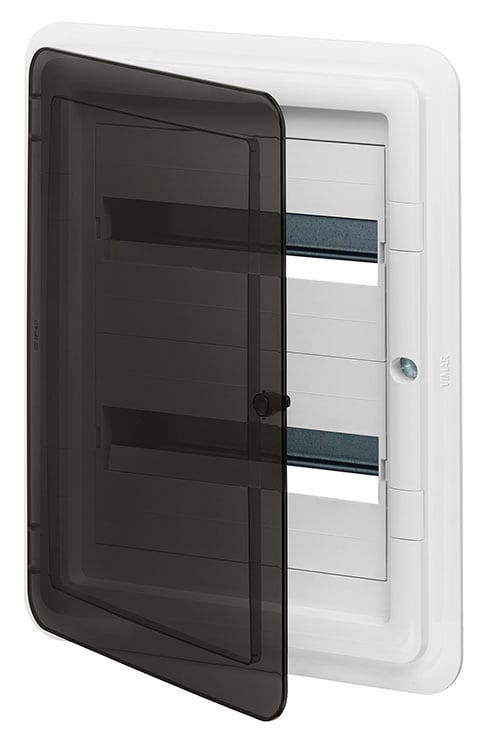 Centralino estetico da incasso IP40, 24 moduli, completo di guida DIN (60715 TH35), portello colore fumé