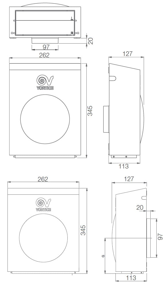 •Motore a 2 velocità dotato di cuscinetti a sfera e di termoprotettore. •Coperchio frontale in lamiera d’acciaio P04 verniciata con vernice polyestere a garanzia di elevata protezione nei confronti degli agenti atmosferici. •Flange porta-motore stampate in polipropilene (PP) caricato. •Il meccanismo di chiusura automatica della bocca di mandata, accoppiato alla griglia di protezione, previene i rischi di rientri d’aria e protegge dall’ingresso di corpi estranei. •Grado di Protezione: IPX5. •Classe di Isolamento: Cl. II