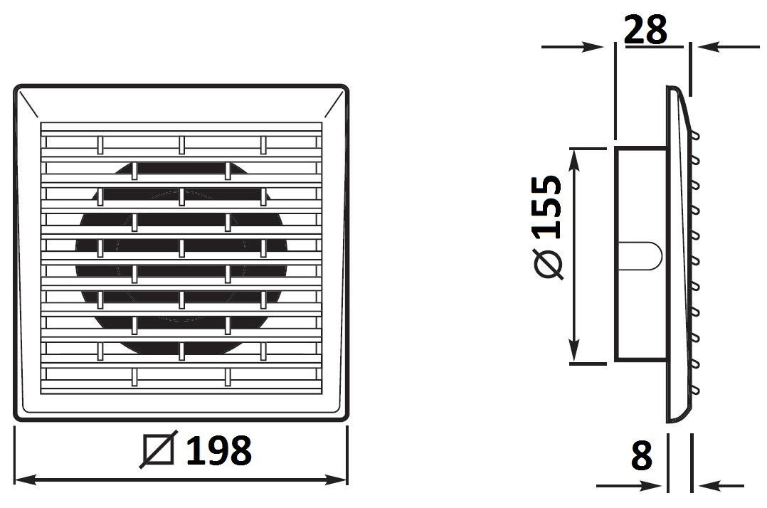 GRIGLIA FISSA - Da montare all’inizio o alla fine del condotto di ventilazione. - Fabbricata interamente in resina termoplastica antiurto resistente agli UV.