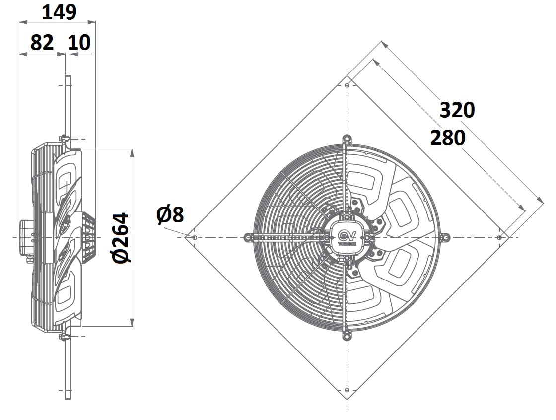 Idoneo per applicazioni in ambienti commerciali ed industriali, per impianti di ventilazione o aspirazione in capannoni, ospedali, discoteche, uffici, teatri, fabbriche, palestre, ristoranti ecc... • Pannelli in lamiera d’acciaio fosfatata, verniciata a polvere epossidica in colore grigio con effetto martellato resistente agli agenti atmosferici. • Motore termo-protetto in classe F, di tipo AC, a rotore esterno, ad una velocità ed equipaggiato di cuscinetti a sfera. • Girante, ad elevata resa aeraulica, con pale in lamiera d’acciao elettrozincata e verniciata con vernice poliestere in colore nero. • Bassi livelli sonori. • Griglia di supporto e protezione antinfortunistica e antivolatile, in anelli di acciaio elettrosaldato e verniciato con vernice epossidica nera, facilmente asportabile per la manutenzione. • Ampio range di temperature di funzionamento continuo (compreso tra -30 °C e +50 °C). • Alimentazione 230 V/50 Hz. • Grado di protezione motore: IP54. • Classe di isolamento: I.