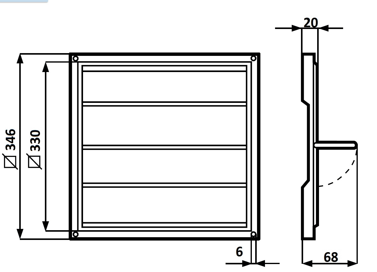 Persiana a gravità, Si applica al prodotto sul lato di mandata per evitare rientri d’aria a prodotto spento.
