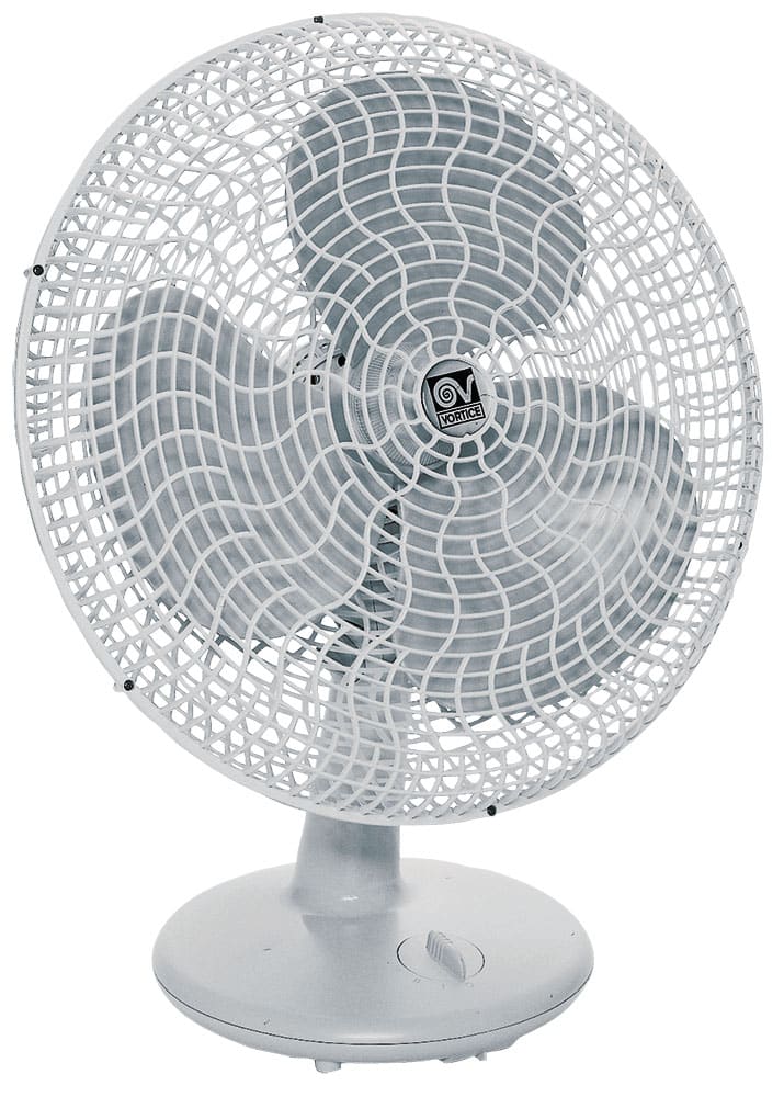 Ventilatore oscillante da tavolo. Realizzato in resina termoplastica antiurto. 3 velocità di funzionamento. Griglia di protezione dal design elegante e innovativo, asportabile per una facile pulizia. L’oscillazione della testa del ventilatore viene azionata manualmente mediante pressione del dispositivo posto sulla testa del ventilatore stesso. I ventilatori da tavolo sono comandati da un interruttore rotativo posto sulla base del ventilatore con il quale è possibile accendere/spegnere e variare le velocità di rotazione in sequenza. I modelli da tavolo sono dotati di piedini in gomma antivibranti sulla base di appoggio. Cavo di alimentazione lungo 1.8 m. Isolamento: Cl. II .