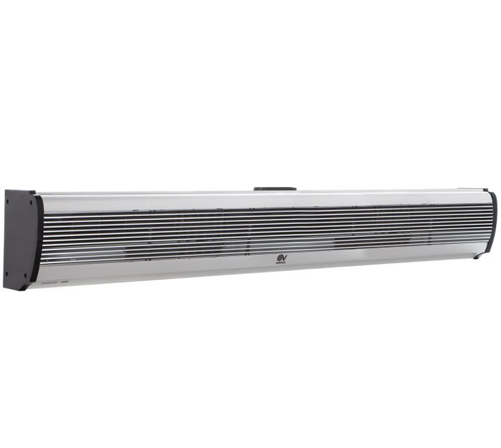 Barriere d’aria per installazione orizzontale fissa in corrispondenza delle porte e, più in generale, delle zone di accesso di locali pubblici, negozi, supermercati o centri commerciali, generano una lama d’aria che ostacola l’ingresso di aria esterna a temperatura diversa da quella desiderata. Particolarmente indicate anche per prevenire l’ingresso di fumo, smog o insetti ed evitare la diffusione di odori tra ambienti contigui. Involucri caratterizzati da pannelli frontali in alluminio spazzolato di colore grigio argento integranti la griglia di aspirazione; pannelli posteriori in lamiera d’acciaio verniciata nera; fianchetti in resina plastica nera. Ventilatori tangenziali, a garanzia di bassi livelli di emissioni sonore, azionati da motori asincroni bialbero a due velocità per il miglior compromesso tra prestazione erogata, temperatura del flusso d’aria generato (nel caso dei modelli con batteria elettrica), e livello di emissione sonora. 2 velocità di funzionamento. I modelli AIR DOOR H hanno batterie elettriche a termoresistori (PTC) caratterizzate da elevate rese termiche e ridotta resistenza aerodinamica, protette contro sovratemperature e picchi di tensione. La specifica logica di funzionamento, che ritarda di 30” l’arresto del ventilatore dopo lo spegnimento della resistenza, contribuisce al loro affidabile funzionamento nel tempo. Alette orientabili, montate in corrispondenza della zona di fuoriuscita dell’aria, permettono di orientare il flusso generato. Consentono risparmio nei consumi perchéevitano la creazione di variazioni termiche e di dispersioni: anche i climatizzatori (in estate) o i riscaldamenti (in inverno) lavorano in modo più efficace, risparmiando a loro volta il proprio consumo. Sono utilizzabili in tutte le stagioni: sono modelli in versione neutra. Grande flessibilità di installazione: la posizione frontale della griglia di aspirazione consente il montaggio anche a ridosso del soffitto nei locali di altezza ridotta (minimo 2.55 m). Facilità e rapidità di installazione, graziealla pratica staffa in dotazione. Possibilità di installazione in serie, per coprire aperture di elevata larghezza. Abbinabili a sensori porta standard presenti sul mercato. Classe di Isolamento: Cl.I .