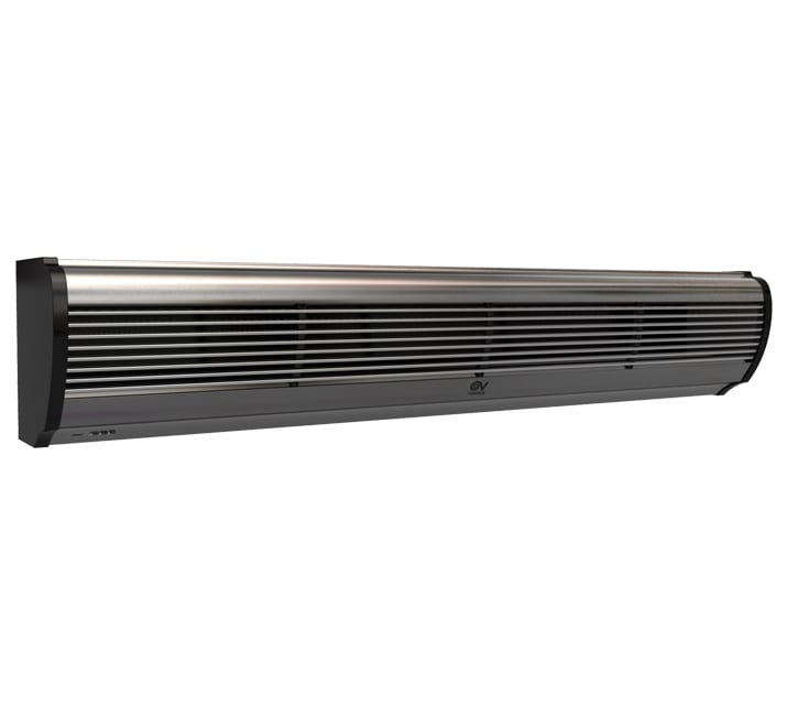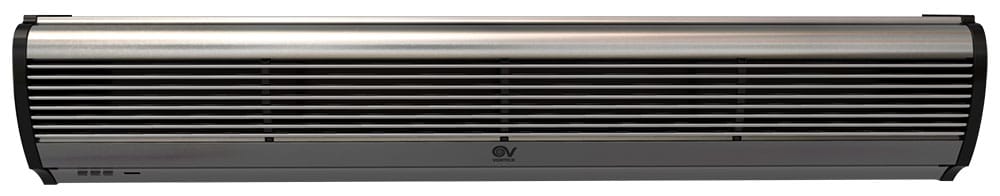 Barriere d’aria per installazione orizzontale fissa in corrispondenza delle porte e, più in generale, delle zone di accesso di locali pubblici, negozi, supermercati o centri commerciali, generano una lama d’aria che ostacola l’ingresso di aria esterna a temperatura diversa da quella desiderata. Particolarmente indicate anche per prevenire l’ingresso di fumo, smog o insetti ed evitare la diffusione di odori tra ambienti contigui. Involucri caratterizzati da pannelli frontali in alluminio spazzolato di colore grigio argento integranti la griglia di aspirazione; pannelli posteriori in lamiera d’acciaio verniciata nera; fianchetti in resina plastica nera. Ventilatori tangenziali, a garanzia di bassi livelli di emissioni sonore, azionati da motori asincroni bialbero a due velocità per il miglior compromesso tra prestazione erogata, temperatura del flusso d’aria generato (nel caso dei modelli con batteria elettrica), e livello di emissione sonora. 2 velocità di funzionamento. I modelli AIR DOOR H hanno batterie elettriche a termoresistori (PTC) caratterizzate da elevate rese termiche e ridotta resistenza aerodinamica, protette contro sovratemperature e picchi di tensione. La specifica logica di funzionamento, che ritarda di 30” l’arresto del ventilatore dopo lo spegnimento della resistenza, contribuisce al loro affidabile funzionamento nel tempo. Alette orientabili, montate in corrispondenza della zona di fuoriuscita dell’aria, permettono di orientare il flusso generato. Consentono risparmio nei consumi perchéevitano la creazione di variazioni termiche e di dispersioni: anche i climatizzatori (in estate) o i riscaldamenti (in inverno) lavorano in modo più efficace, risparmiando a loro volta il proprio consumo. Sono utilizzabili in tutte le stagioni: sono modelli in versione neutra. Grande flessibilità di installazione: la posizione frontale della griglia di aspirazione consente il montaggio anche a ridosso del soffitto nei locali di altezza ridotta (minimo 2.55 m). Facilità e rapidità di installazione, graziealla pratica staffa in dotazione. Possibilità di installazione in serie, per coprire aperture di elevata larghezza. Abbinabili a sensori porta standard presenti sul mercato. Classe di Isolamento: Cl.I .