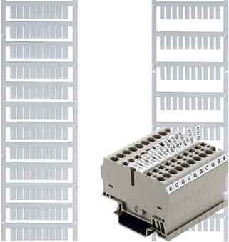 Marcatore per l'etichettatura dei morsetti. I marcatori possono essere etichettati con una stampante o un plotter e il software appropriato.