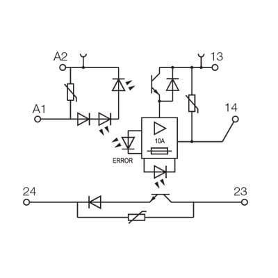 Relè a stato solido per commutare e amplificare segnali digitali. Il funzionamento del relè è senza usura e molto silenzioso. Il circuito della corrente di comando e il circuito della corrente di carico sono isolati elettricamente.