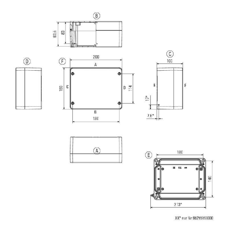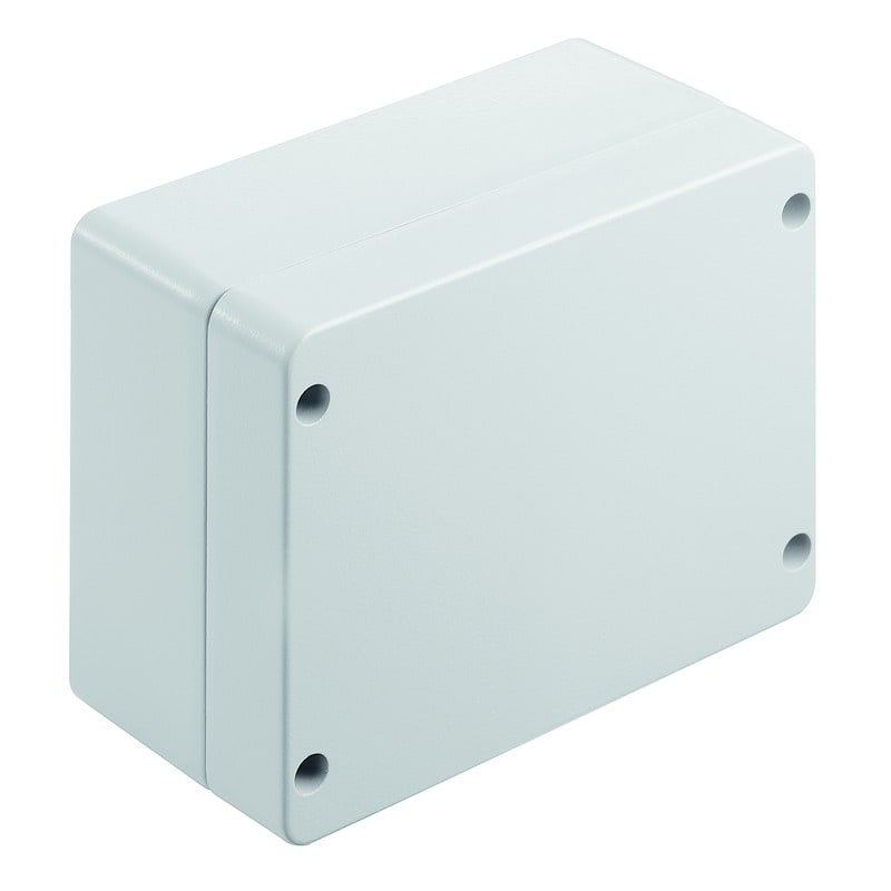Custodia in metallo per l'utilizzo in applicazioni industriali. I fori per il montaggio sono posti all'esterno dell'area di tenuta stagna. Il montaggio a muro può essere realizzato utilizzando fori di montaggio o piedini di montaggio.