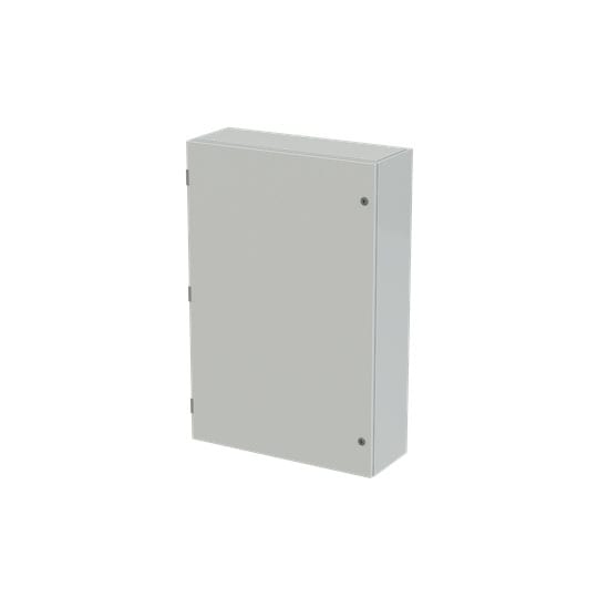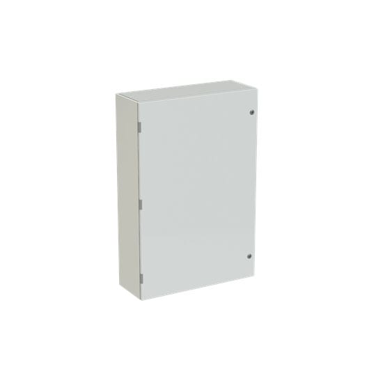 Cassa con porta cieca e piastra di fondo serie SR2, struttura in lamiera d'acciaio spessore 12/10, piastra di fondo in lamiera zincata spessore 20/10. Utilizzata per la realizzazione di quadri di comando e controllo delle più varie macchine industriali: da grossi macchinari a linee automatizzate di produzione o parti di esse, alle tipiche installazioni di quadri bordo macchina, a caldaie, impianti di riscaldamento ed altro ancora. Consente anche la realizzazione di quadri di distribuzione secondaria grazie alla possibilità di installare tutta la gamma di apparecchi e interruttori modulari su guide DIN abbinate ad appositi pannelli frontali modulari preforati e incernierati.
