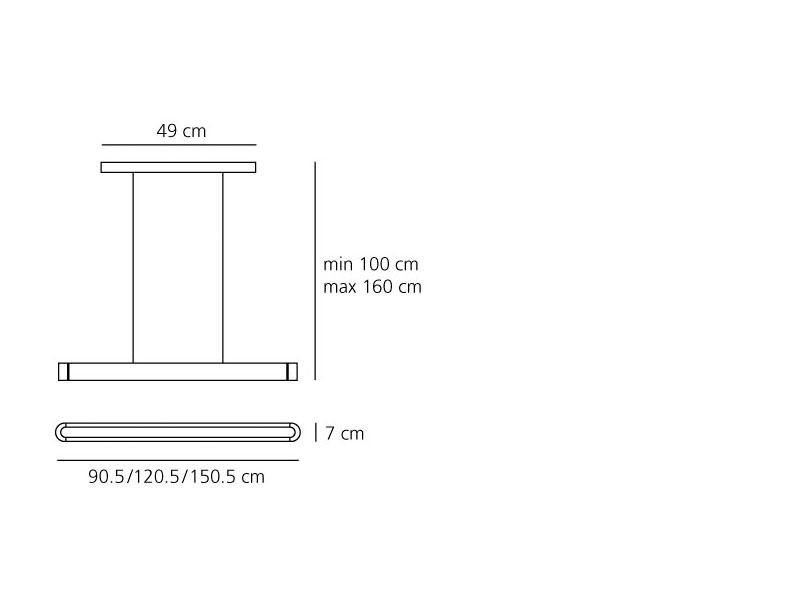 Rosone in resina termoplastica; corpo in alluminio verniciato; diffusore inferiore in policarbonato opalino. Lampadina inclusa. Disponibile monotubo o bitubo in linea in diverse lunghezze a seconda della sorgente impiegata. I cavetti di sospensione svolgono anche funzione di alimentazione. Colore: Bianco. Emissione: Indiretta Diffondente/diretta.