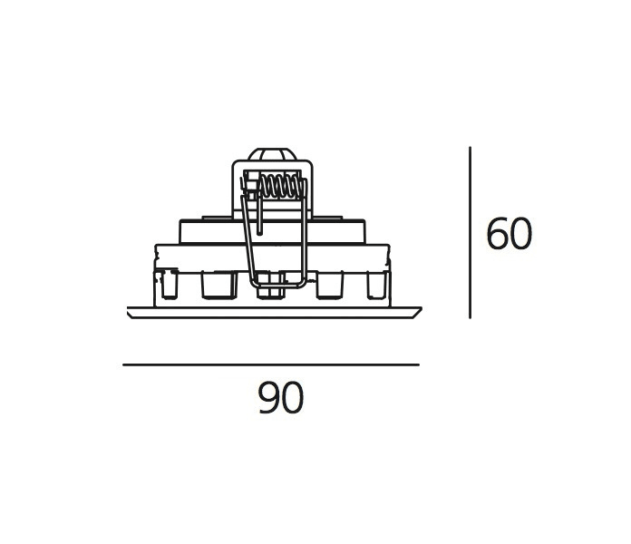 Apparecchio di illuminazione che impiega sorgenti a LED ad alto rendimento. Installazione a soffitto. Versione quadrata. Costituito da corpo, cornice, diffusore in vetro molle di fissaggio Corpo in alluminio EN AB-44100, con guarnizioni in silicone. Cornice in alluminio. Vetro temprato serigrafato nero, spessore 8mm. Molle di fissaggio in Inox armonico. Collegamento elettrico alla rete mediante cavo H05RN-F e morsettiera IP68, fornita a corredo. Temperatura superficiale del vetro inferiore a 40ÅãC. Ottiche fisse. Caratteristiche tecniche degli apparecchi conformi alla EN60598-1 e parte 2-13. Grado protezione IP65. EGO FLAT: classe III. Il montaggio va eseguito da personale specializzato. Seguire scrupolosamente le istruzioni. Lampada: Power Supply: Alimentatore elettronico fornito a parte. Watt: 3.2W. Flusso Luminoso (lm): 179lm. CCT: 4000K. Efficiency: 100%. Efficacy: 55.94lm/W.