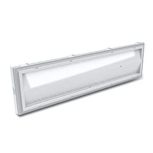 Apparecchio per l’illuminazione di emergenza progettato in funzione dell’elevato flusso luminoso per installazioni in grandi aree commerciali e industriali. Il corpo in policarbonato bianco integra un riflettore cuneiforme dotato di due serie di LED ad elevata efficienza. Lo schermo in policarbonato ad elevata trasparenza è stato progettato per garantire il grado di protezione IP65. Sul guscio esterno del prodotto sono previsti 4 ingressi in prerottura, sia per il passaggio diretto del cavo (Connettore IP PLUG),che per il collegamento con tubo liscio e corrugato ø16 e ø20 (Connettore invisibile). Installazioni: parete, soffitto. Corpo: policarbonato bianco RAL 9003. Ottica: Simmetrica, bianca. Schermo: Policarbonato trasparente. GRANLUCE T5LED AT IP65 SE123H SA 1-2-3h PB 6V 4Ah 32 1250/800/550Lm (SE) 400LM (SA).